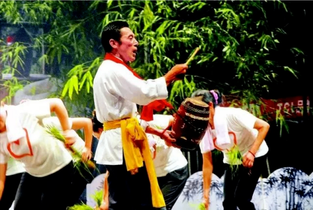 在鄂南山区,只要听见"咚!哒!咚哒!"的鼓点,老农们就知道该下地干活了。通山山鼓形似小堂鼓,右手执扦击鼓,左手托着鼓的底部,配合用手指调节出不同的音色。高亢的曲调穿透山林,节奏随劳作变化:插秧时轻快,收割时激昂。在山地劳动时称为“挖山鼓”,在水田劳作时称为“栽田鼓”,这种劳动号子不仅是时间的指挥棒,更是山民豪爽性格的写照。1988年,改编的《喜耘禾》山鼓曾获省级奖项。